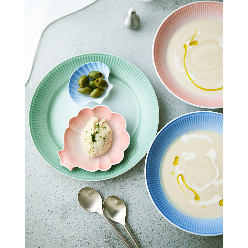 コーラル、ブルー、グリーンという色を自由に組み合わせて楽しめるのも、新コレクションIRISの魅力。日常で使いやすいプレートやディーププレートはもちろんのこと、小皿やミニトレー代わりに使えるシェルディッシュやカールディッシュなど、性別を問わずギフトにぴったり。
