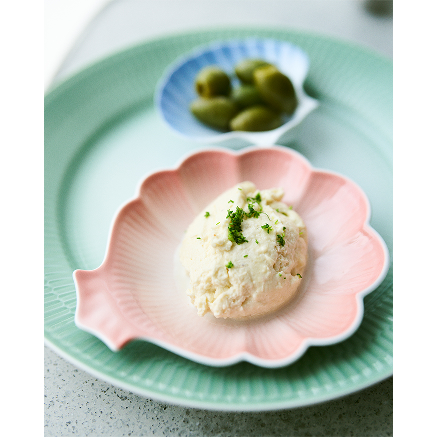 プレートをトレーがわりにして、バターやオリーブは小皿にちょこちょこ盛って見た目も楽しく。IRISのやさしいグラデーションカラーは、3色違う色、異なる形を組み合わせてもテーブルに躍動感と自然なまとまりが生まれます。