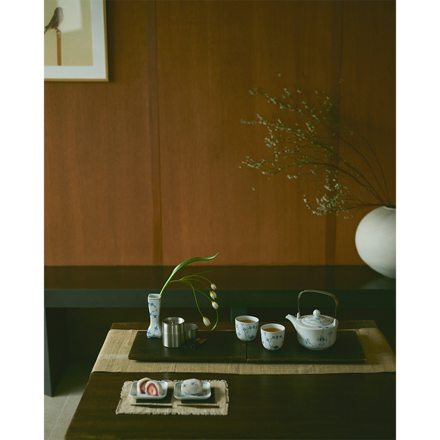 お気に入りの器にお茶と和菓子をそっと並べて、テーブルの上にその季節ならではの小さな風景を楽しむ。暮らしの中に、季節を味わうひとときを。四季の気配を感じながら、ロイヤル コペンハーゲンのテーブルウェアとともに、お茶の時間を楽しんでみてはいかがでしょうか。