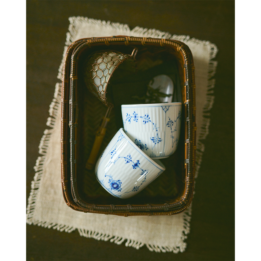 和のテイストにも馴染む、ブルーフルーテッド プレインシリーズ。ニュートラルカラーのテーブルランナーやウッドトレーを合わせるだけで、お茶の時間がより美しく、心豊かなひとときに。