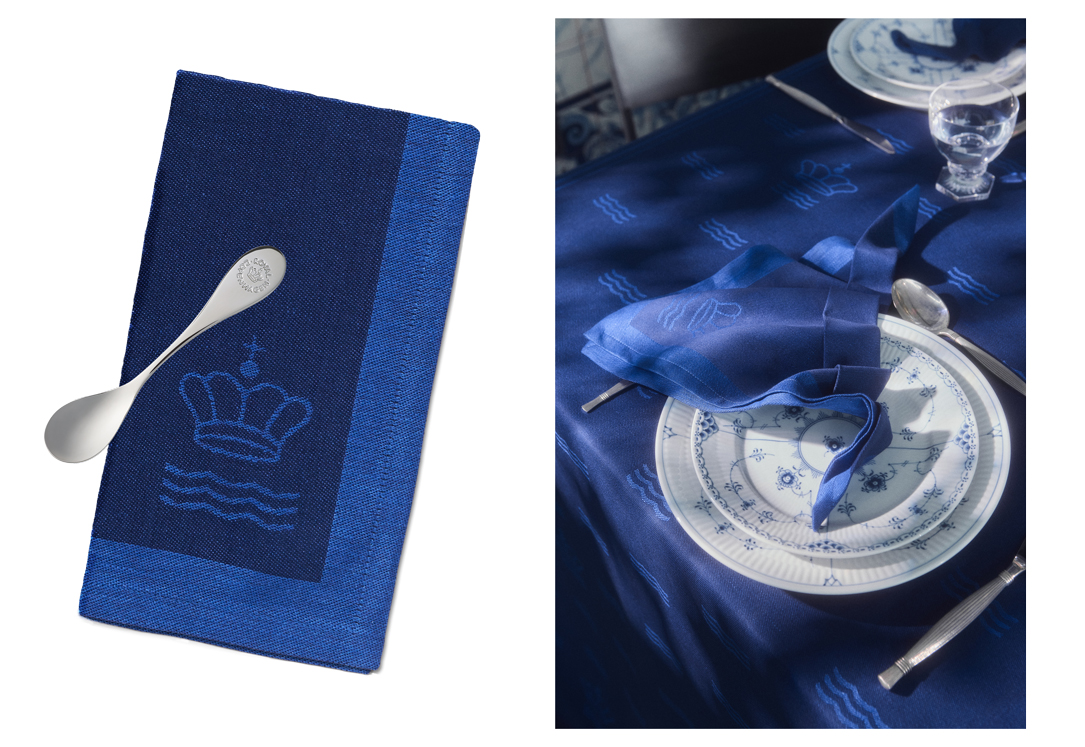 深いブルーの丈夫な織りのテーブルナプキンが食卓に落ち着いた美しさを添えます。ヒュッゲで心地のよいひとときをお過ごしください。